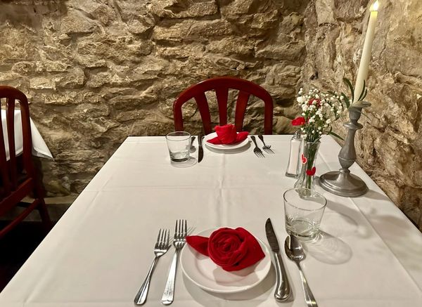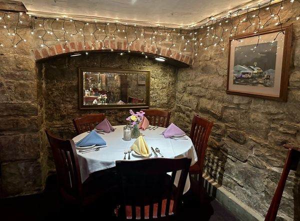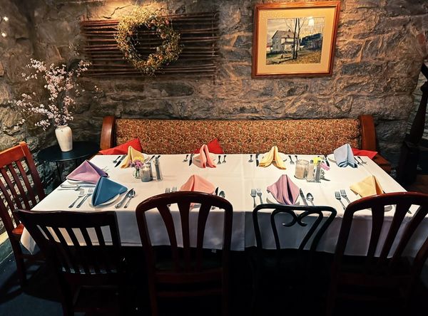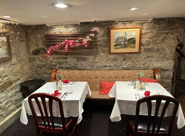 Experience the charm and elegance of our main and upstairs dining rooms. Admire the original brickwork from 1806 and take in the warmth of our gas fireplaces. When making your reservation, feel free to request a table near the fireplace. Our two dining rooms are available for private events with up to 45 guests.