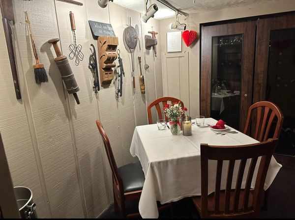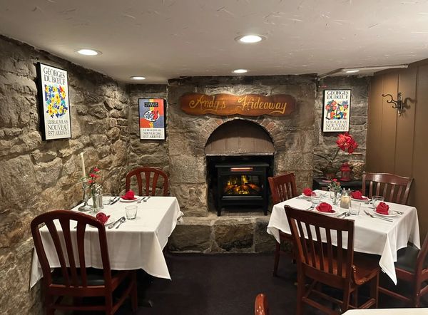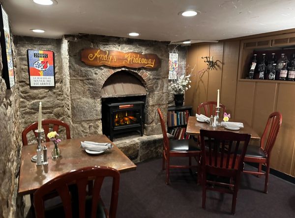 The Side Door Speakeasy features a full-service bar that caters to our guests. Arriving early? Grab a drink at the bar while you wait for your table. You can also enjoy your meal at the bar area. Come enjoy the cozy and quiet atmosphere of Andy's Hideaway! Or you can dine at a private table in our wine room!
